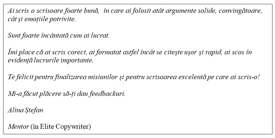 am ajuns la Elite Copywriter, cursul ce mi-a definitivat parcursul. 😎